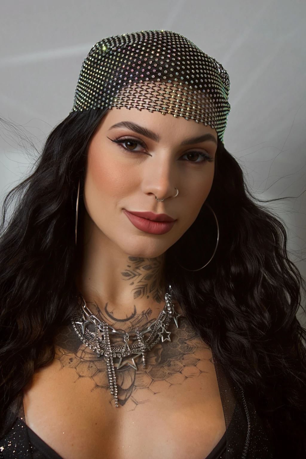 Com brilho intenso e design versátil, esta bandana é pura atitude para quem não tem medo de ousar. Perfeita para festivais, baladas ou aquele rolê especial, ela destaca você com glamour e personalidade.