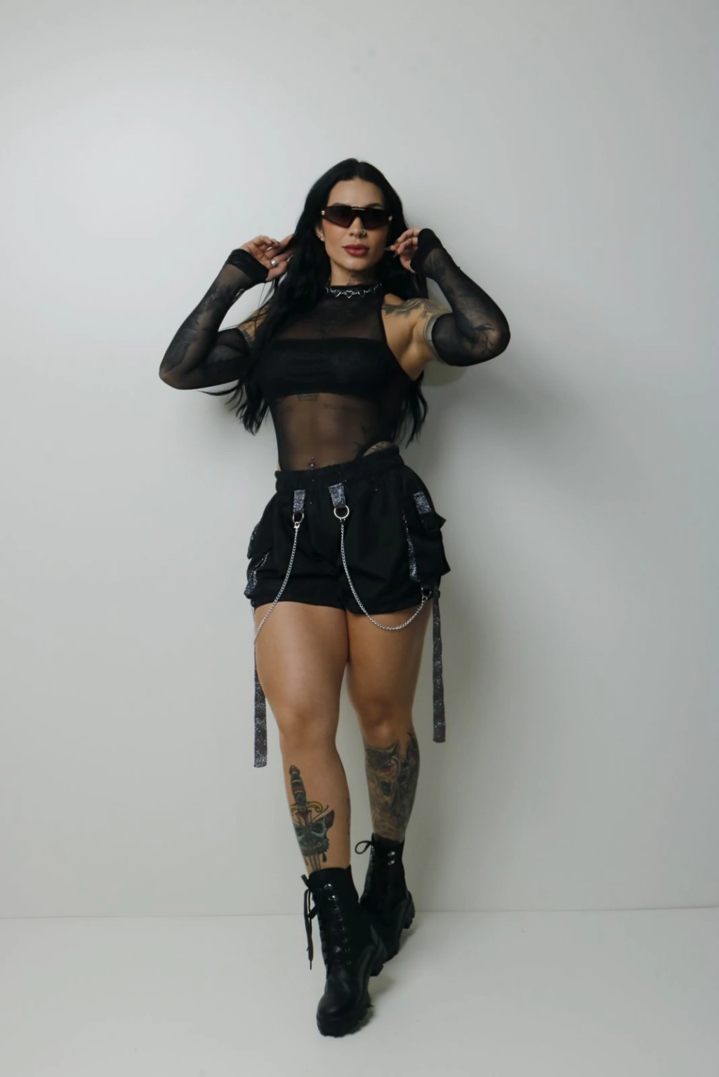 Short cargo com detalhes em correntes com refletivo.